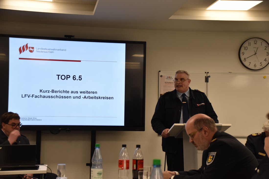 In seinem Bericht informierte LFV-Vizepräsident Gerd Diekena ausführlich über die Aktivitäten des Bezirks Weser-Ems im Jahr 2025. Schwerpunkte bildeten zahlreiche Arbeits- und Netzwerktreffen auf Landes- und Bezirksebene, unter anderem mit dem Landesbranddirektor des Niedersächsischen Innenministeriums, Dieter Rohrberg, in den Regionen Oldenburg und Ostfriesland. Weitere wichtige Termine waren Veranstaltungen wie „Partner der Feuerwehr“, Wettbewerbe sowie Verbandsversammlungen auf allen Ebenen. Besonders hervorgehoben wurden zudem die Zeltlager des Oldenburgischen Feuerwehrverbandes und des Feuerwehrverbandes Ostfriesland, die eine wichtige Rolle für die Kinder- und Jugendarbeit spielen. Auch die Leistungsspangenabnahmen in Lemwerder sowie in Oldenburg/Sandkrug fanden Erwähnung.