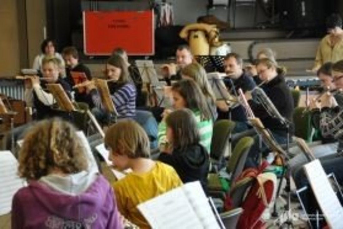 Nach einem ersten gemeinsamen Probenabend am Freitag, stand der Samstag ganz im Zeichen der Registerprobenarbeit. Neben Bezirksstabführer Jan Krüger, der als Lehrgangsleiter die Gesamtproben sowie das Schlagzeugregister unterrichtete, nahmen Martina Krüger und Anke Schrader, beide langjährig als Flötendozentinnen in verschiedenen Amateurmusikverbänden tätig, sich der Flöten an.