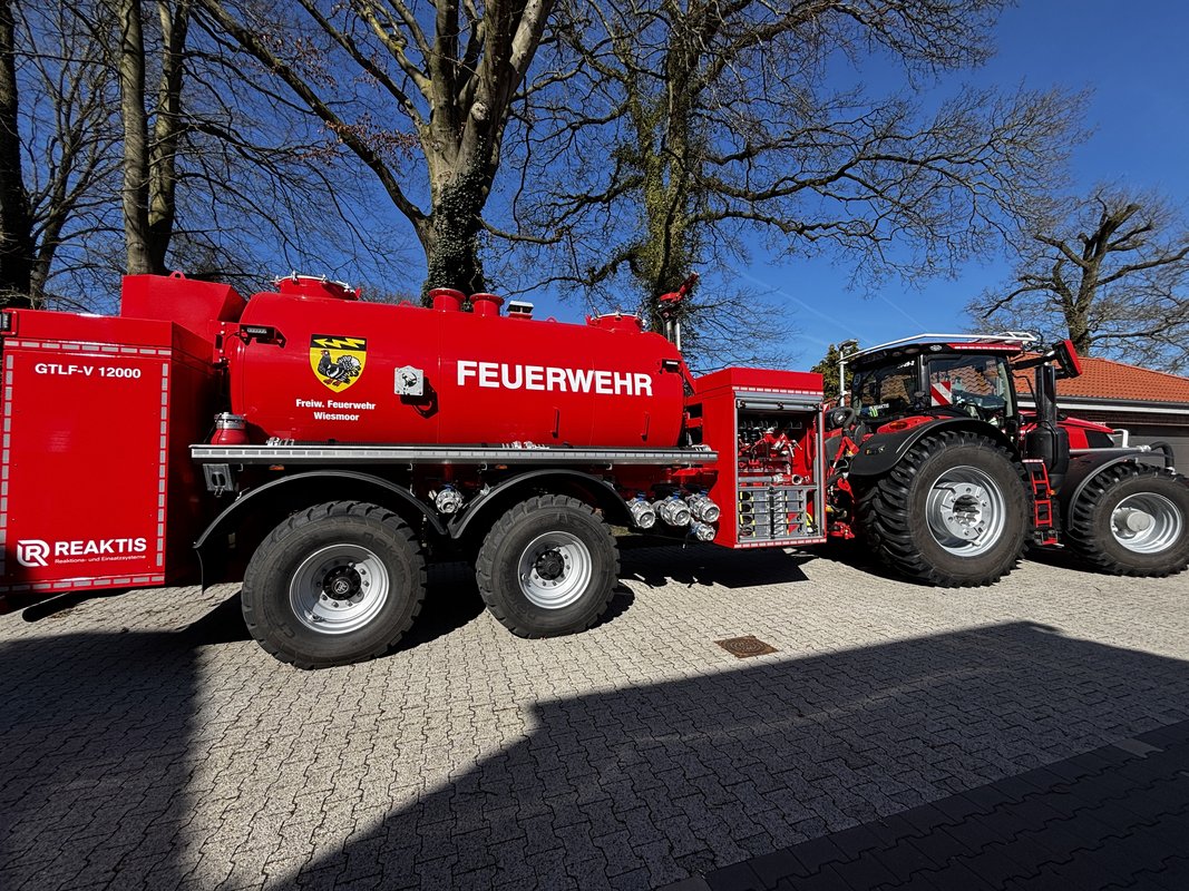 Für besonderes Interesse sorgte eine Außenvorführung der Feuerwehr Wiesmoor, die ihren Löschtraktor präsentierte, ein Spezialfahrzeug für Einsätze in schwer zugänglichem Gelände.