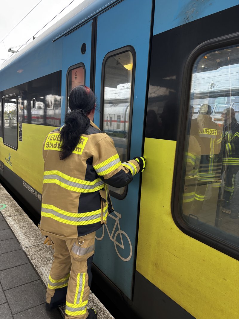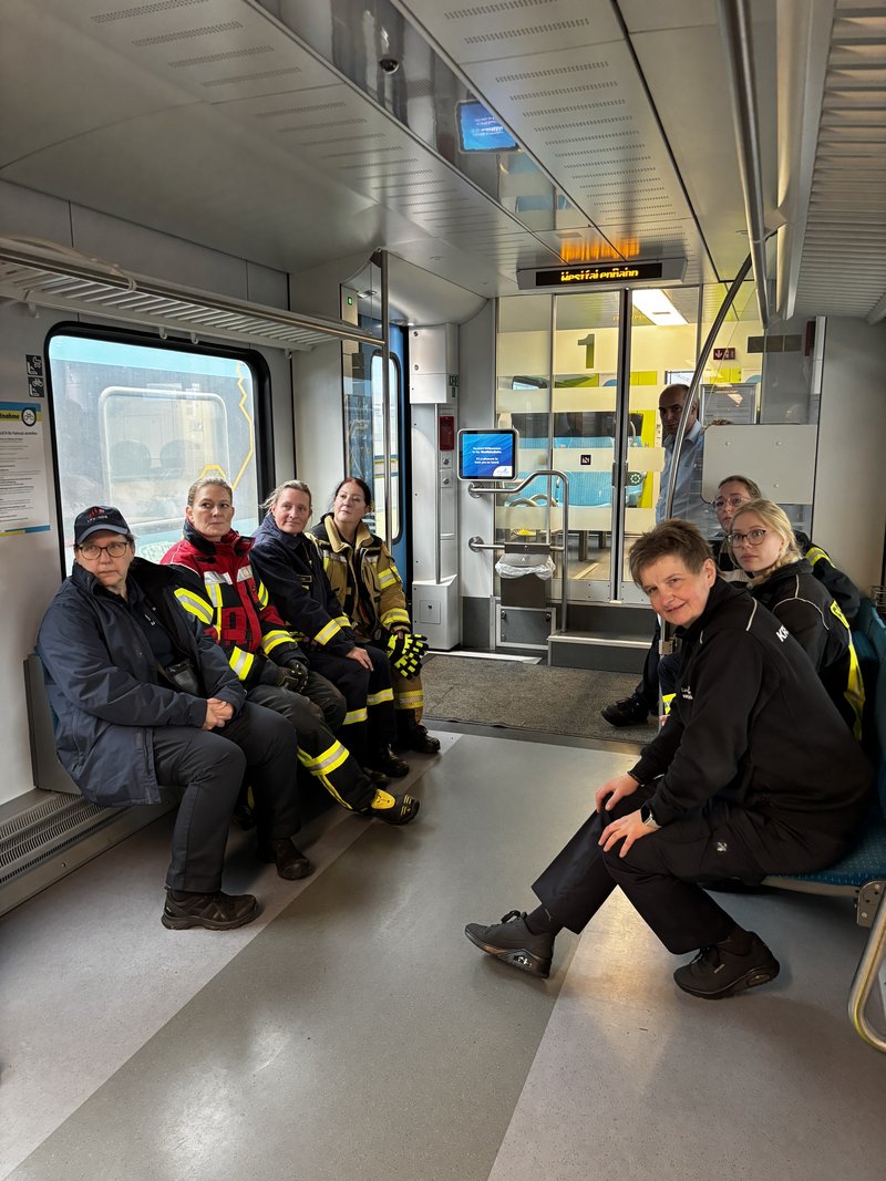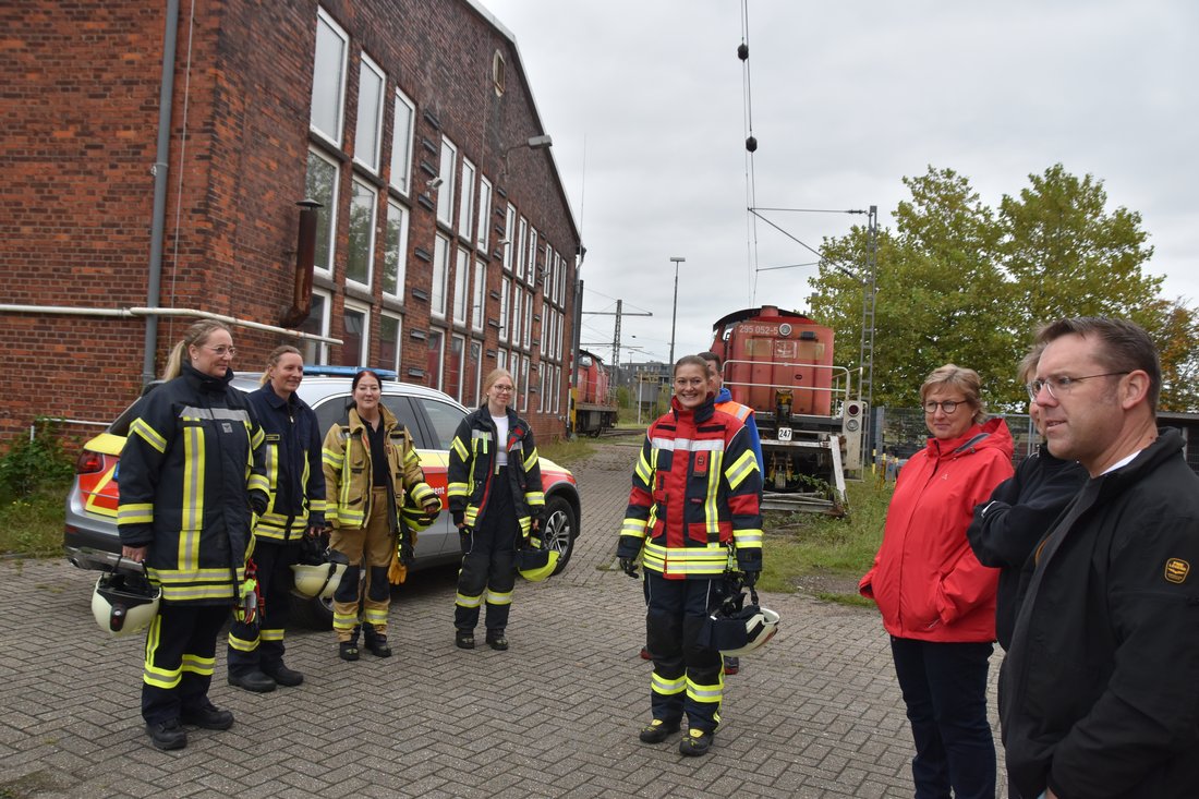 Ein besonders praxisnaher Workshop, der am Emder Bahnhof stattfand. Die Notfallmanager der Deutschen Bahn (Stefan Halm und Marcel Marquardt) erläuterten Gefahren des Bahnbetriebs und erklärte Sicherungsmaßnahmen (bei Arbeiten an den Gleisen oder der Oberleitung werden die Bereiche geerdet, um Restspannung zu beseitigen und Sicherheit zu gewährleisten). Weiter durften die Feuerwehrfrauen das Stellwerk in Emden besichtigen, Herr Halm erklärte den Frauen welche Aufgaben die Mitarbeiter haben und wie ein Stellwerk funktioniert. Im Anschluss wurde ein Übungsszenario an einem Zug der Westfalenbahn durchgeführt, hier wurde gezeigt wie man die Türen von aussen über ein Türnotöffnungssystem öffnet. - Technische Hilfeleistung – Einsatzmöglichkeiten mit verschiedenen Rettungsgeräten