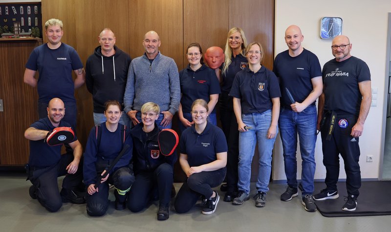 Der Trainer für Selbstverteidigungstechniken Helmut Beerink konnte als Dozent gewonnen werden. Die Teilnehmer erfuhren nicht nur, wie man sich einer Konfliktsituation entziehen kann, sondern lernten auch viele Griffe und Techniken, um unverletzt die Situation zu entschärfen. Der Angriff mit einem Messer musste ebenso abgewehrt werden, wie Hiebe mit einem Stock. Die Teilnehmer machten begeistert mit und nahmen viele Eindrücke mit nach Hause und in die eigenen Feuerwehren. Für Jutta Kramer ist schon jetzt klar, dass sie weitere dieser Termine anbieten möchte.
