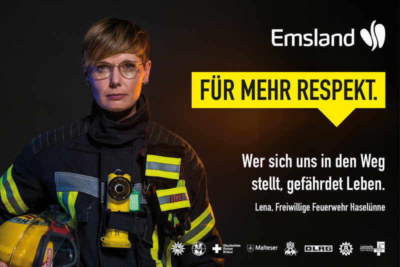 Erst im Juli hat ein Fahrzeugführer bei Oldenburg die Absperrung einer Einsatzstelle missachtet, ist dann mit quietschenden Reifen über den Fahrradweg gefahren und hat dabei den Fuß eines Feuerwehrmannes überrollt. Feuerwehrleute, die den Auftrag haben, eine Einsatzstelle abzusichern, damit die Einsatzkräfte gefahrlos arbeiten können oder es eine Gefahr für vorbeifahrende Personen darstellen könnte, werden beschimpft und beleidigt, weil der PKW-Fahrer doch „eben nur auf die andere Seite“ möchte. Oft muss hier die Polizei eingreifen, um die Angelegenheit zu klären. Auch dem Landkreis Emsland ist diese Negativentwicklung aufgefallen, denn die Zahlen der Polizeistatistiken der letzten Jahre sprechen da für sich. Er hat die Kampagne „Für mehr Respekt.“ ins Leben gerufen. An 27 Stellen stehen an Kreis,- Landes- und Bundesstraßen diese 3 x 2 Meter großen Kampagnenschilder, auf denen echte emsländische Einsatzkräfte zu sehen sind, die mit ihrem Gesicht und ihrem Statement für mehr Respekt einstehen, für die, die eigentlich nur helfen wollen. Da sich die Einsatzkräfte bei Bedarf wehren können müssen, hat die Fachbereichsleiterin Chancengleichheit der Kreisfeuerwehr Emsland Jutta Kramer einen Lehrgang angeboten. Auf Grund der hohen Anzahl an Bewerbungen wurde es auf einen zweiten Lehrgangstermin ausgeweitet.