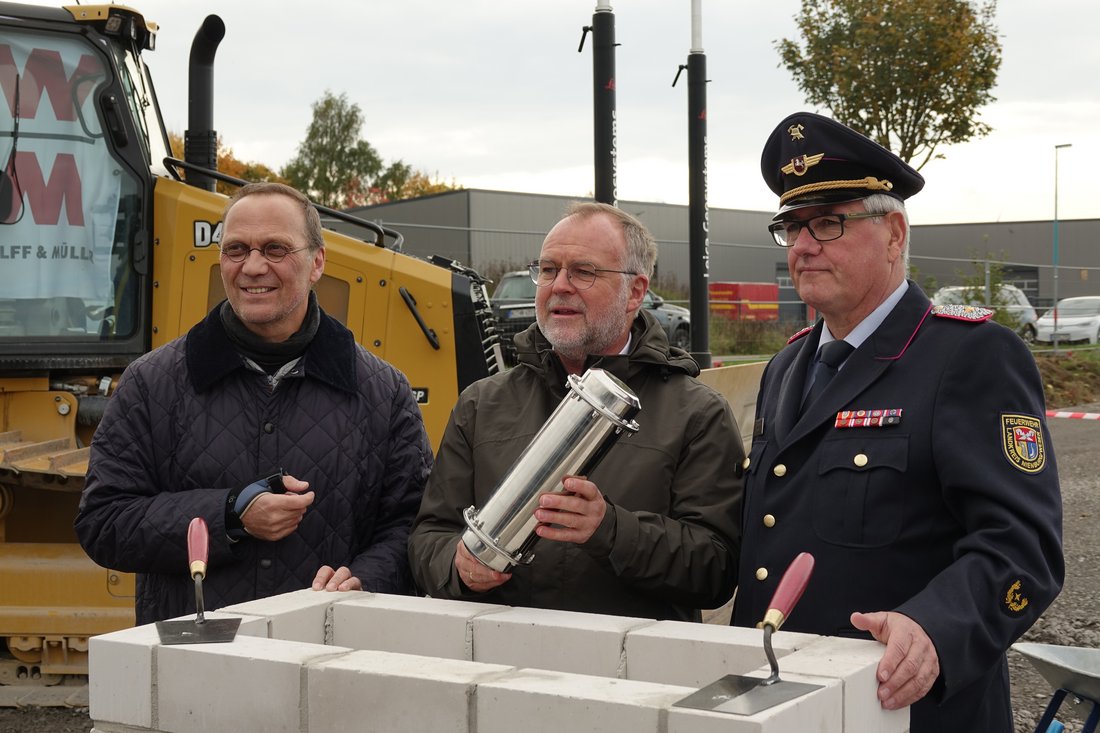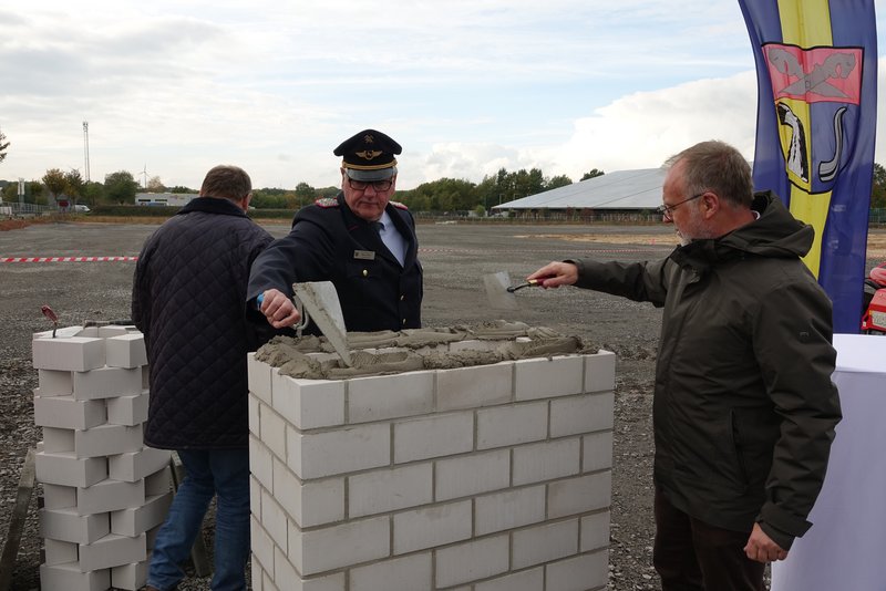 Lemke LK Nienburg. Mit der Grundsteinlegung im Gewerbegebiet Lemke haben jetzt nach langer Planung und Vorbereitung endgültig die Bauarbeiten für den Neubau der Feuerwehrtechnischen Zentrale (FTZ) begonnen. Landrat Detlev Kohlmeier sagte: „Dieser Tag markiert für den Landkreis Nienburg einen besonderen Meilenstein zu einer modernen, leistungsfähigen und zukunftssicheren Infrastruktur für unsere Feuerwehr und den Katastrophenschutz im Landkreis.“ Gemeinsam mit Kreisbrandmeister Bernd Fischer und dem Vorsitzenden vom Lenkungsausschuss, Klaus Niepel mauerte der Landrat eine Zeitkapsel mit diversen Dokumenten, wie Tageszeitung, Bauplänen, Fotos und einem Brief an die Zukunft in das Fundament ein. Die neue FTZ entsteht auf einer Fläche von 3,4 Hektar im Gewerbegebiet in Lemke in unmittelbarer Nähe der B6/B214. Die neue Feuerwehrtechnische Zentrale wird über Fahrzeug- und Logistikhallen für die Kreiseinheiten der Feuerwehr, sowie über Werkstätten für die Mitarbeiter der FTZ, Schulungsräume für die Ausbildung und eine neue Atemschutzübungsstrecke verfügen. Hinzu kommen Logistikflächen für den Zivil- und Katastrophenschutz. Die geplanten Gebäude inklusive Schlauch- und Übungsturm mit Höhen von 24 Metern benötigen eine Fläche von etwa 8400 Quadratmetern. Die Kreisverwaltung wird an dem Standort den Fachbereich Veterinärwesen und Lebensmittelüberwachung, sowie den Fachdienst Brandschutz- und Rettungsdienst, der jetzt auch schon in der FTZ beheimatet ist, unterbringen. Die Ausbildungsmöglichkeiten werden durch einen modernen Übungshof mit Übungsturm, Übungshaus und einem Fuchsbau, sowie einer Schaumübungsfläche deutlich verbessert.