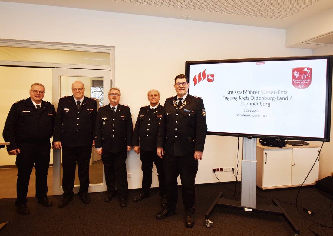Cloppenburg – Am Samstag, den 31. Januar 2026, trafen sich die Kreisstabführer der Kreisfeuerwehrverbände der LFV-Bezirksebene Weser-Ems zur diesjährigen Tagung in der Feuerwehrtechnischen Zentrale (FTZ) Cloppenburg. Bezirksstabführer Werner Brinkmann eröffnete die Sitzung und begrüßte die Anwesenden.