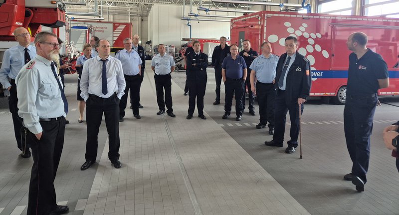 Brandschutzabschnittsleiter Lars Schwieger begrüßte die Teilnehmenden im Namen des Regionsfeuerwehrverbandes Hannover im Feuerwehrhaus der Freiwilligen Feuerwehr Neustadt am Rübenberge und überbrachte die besten Grüße des Regionsfeuerwehrverbandes und des Regionsbrandmeisters Karl-Heinz Mensing.